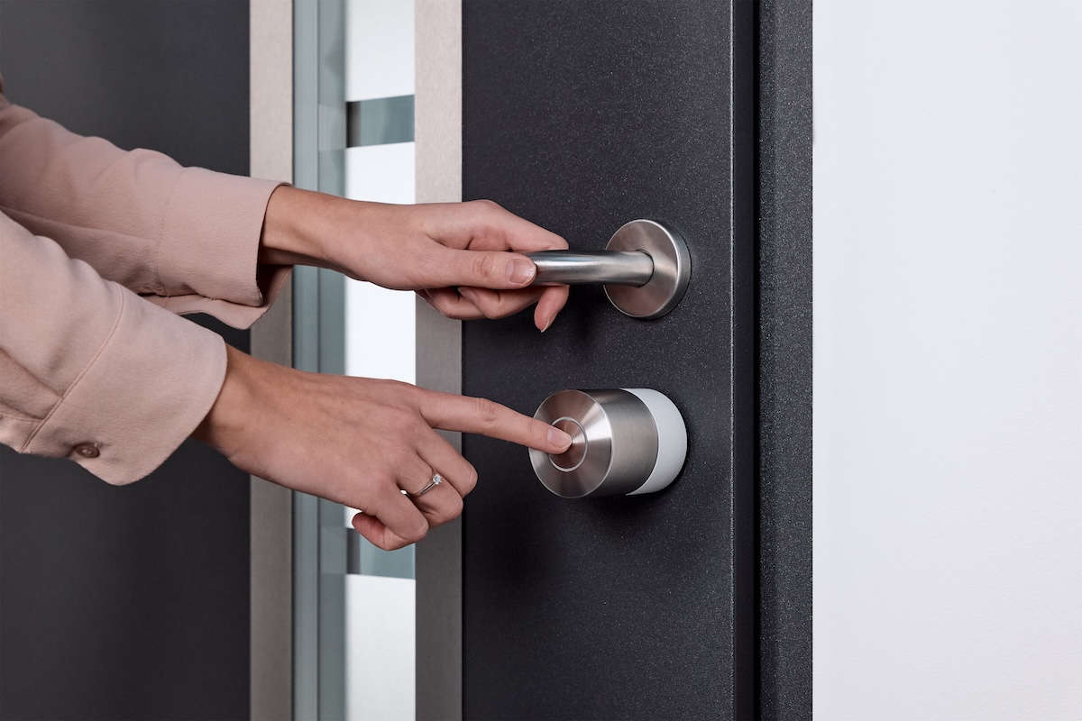 Je hebt verschillende opties om rechtstreeks met je apparaat te ver- en ontgrendelen: je kunt je Smart Lock en je Smart Door bedienen door op de knop te drukken of aan de knop te draaien. Als je je huis verlaat, hoef je alleen maar twee keer op de knop te drukken om Lock ’n’ Go te activeren. Voor de opener kun je Ring to Open en de continumodus activeren door op de knop te drukken. Als je cilinder de nood- en gevarenfunctie ondersteunt, kun je de deur van buiten altijd met je mechanische sleutel openen.