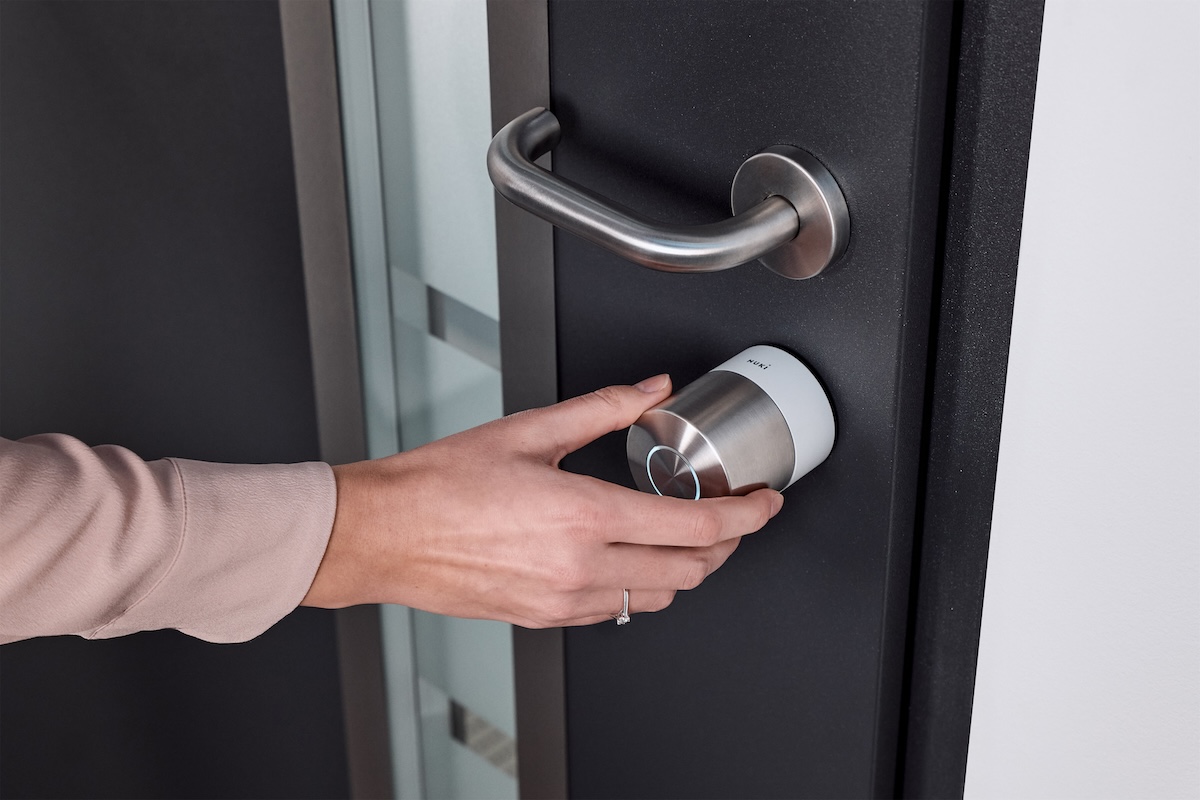 Van binnen kun je je deur ver- en ontgrendelen door op de knop op je Smart Lock of Smart Door te drukken. Je kunt ook gewoon aan de knop op de Smart Lock of Smart Door draaien, zoals je ook met een mechanische sleutel zou doen. Van buiten kun je je deur altijd met je mechanische sleutel ver- en ontgrendelen als je cilinder de nood- en gevarenfunctie ondersteunt.